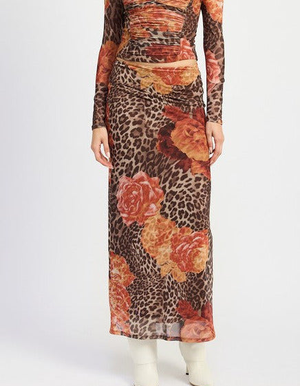 This partially sheer lounging skirt features vibrant floral and animal print in red and orange hues. The lightweight mesh fabric is perfect for beach or boardwalk wear. Pair with the matching blouse for a complete look.