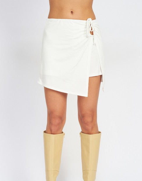 Discover the perfect beach essential with this chic ruched mini cover-up featuring built-in skort bottoms for seamless coverage and comfort. The eye-catching side slit and peep hole cut-out add contemporary flair, while the adjustable side tie string closure provides a customized fit. Designed for versatility, layer it over your activewear or wear it solo for effortless beach-to-boardwalk style. This crisp white mini lounger combines function with fashion in one stunning piece. Available in SM/MED/LG.