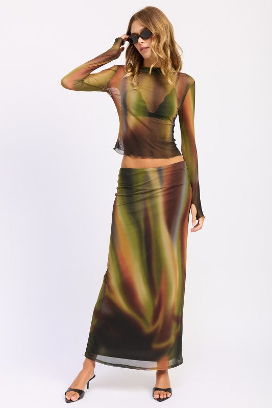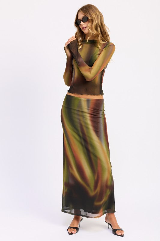 Emory Park’s Printed Mesh Lounging Skirt brings a playful twist to your fall wardrobe with its multicolor mesh overlay in warm autumn hues of olive green, burnt orange, brown, and yellow. Featuring a comfy elastic waist and lightweight lining, this maxi pencil skirt moves effortlessly from boardwalk strolls to beach lounging. The sheer outer shell adds a breezy, stylish layer perfect for relaxed days filled with seasonal charm.
